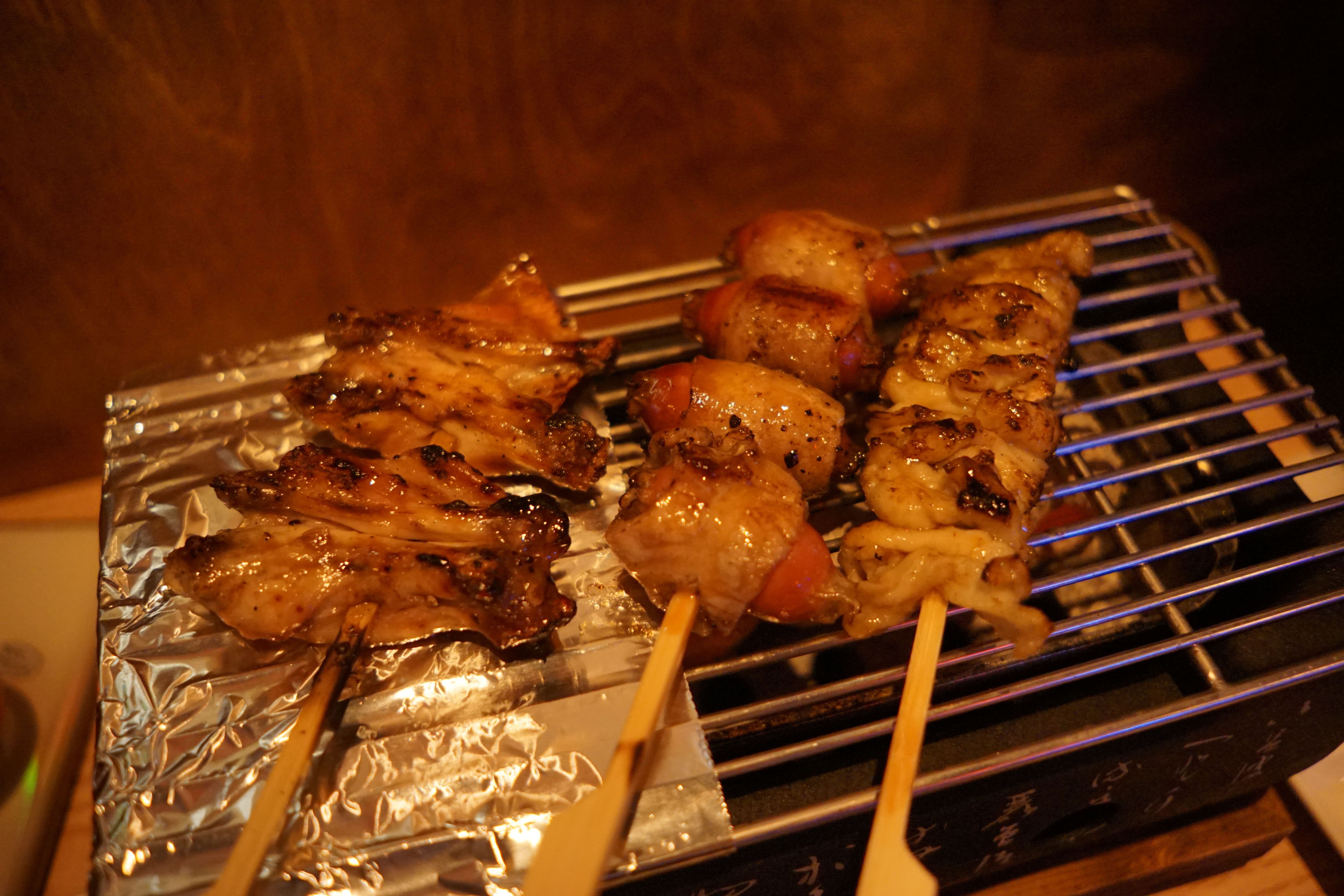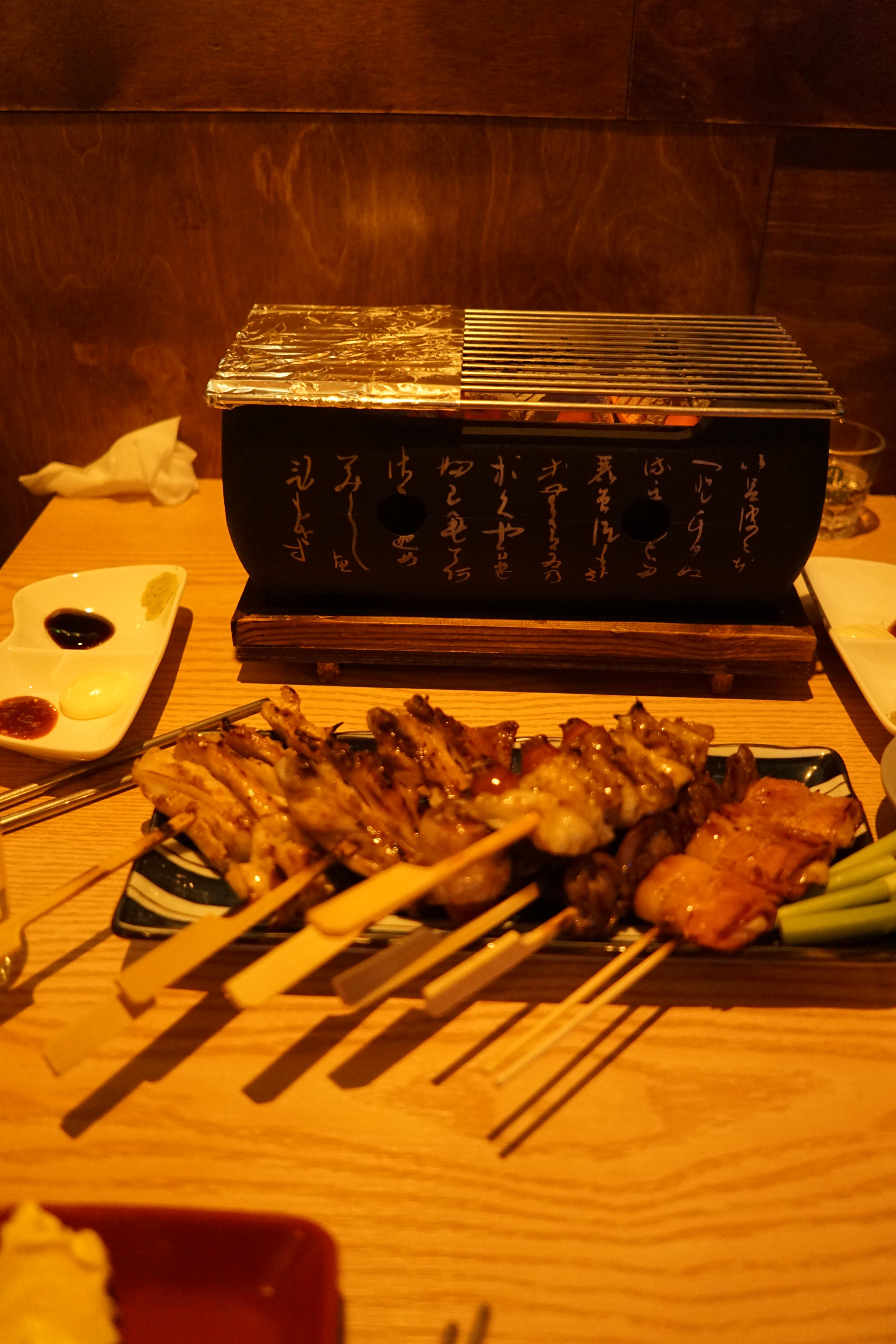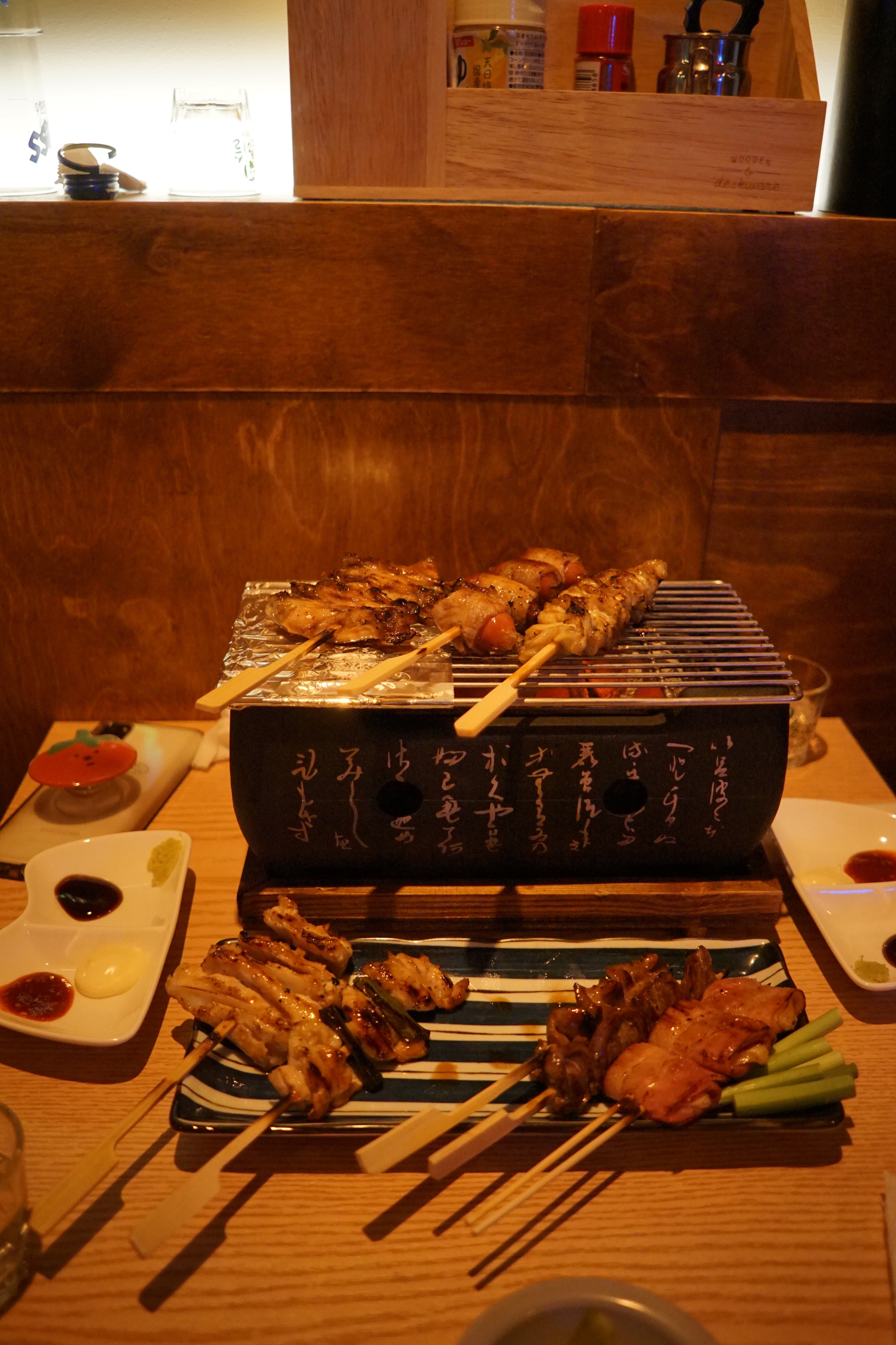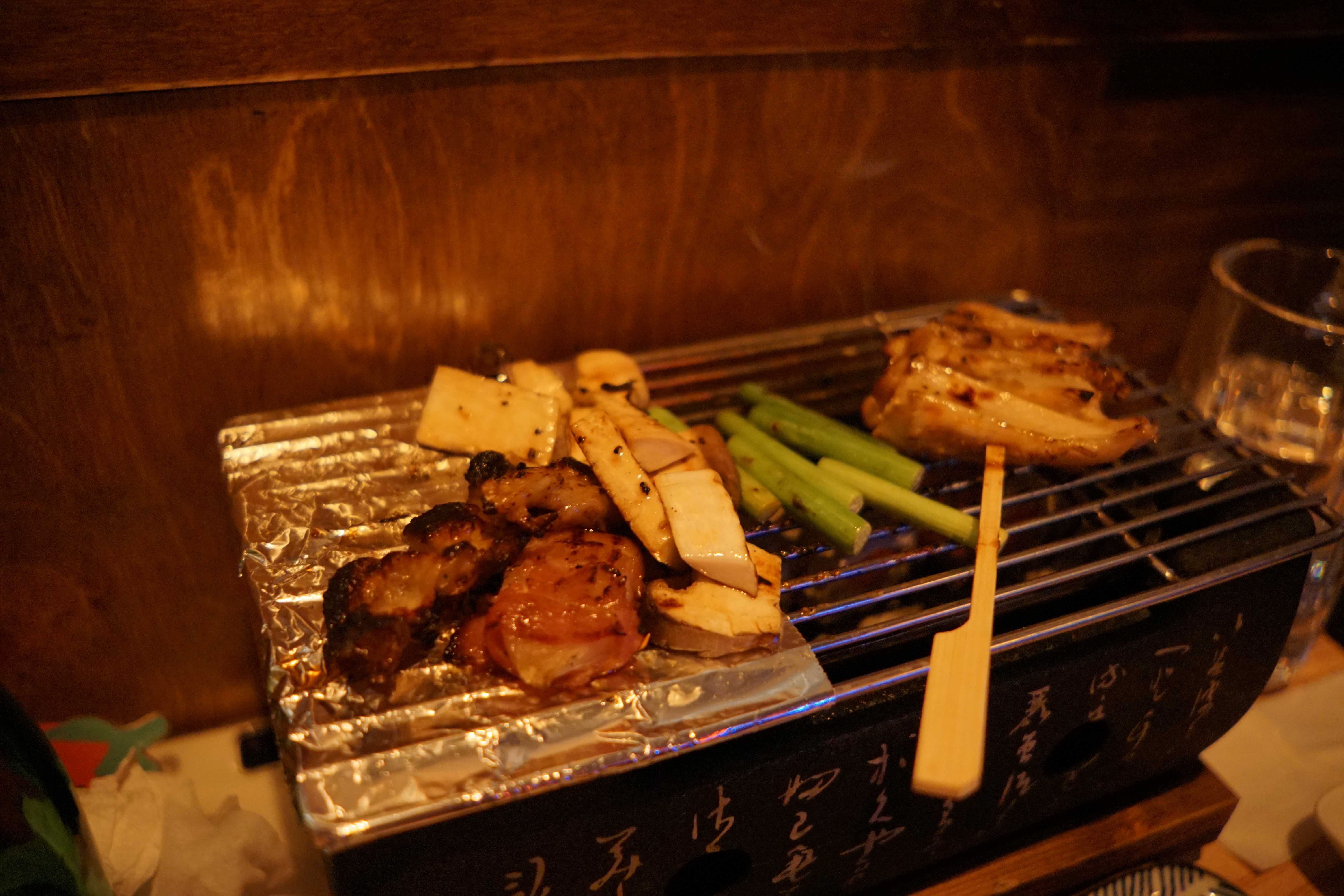 꼬치는 미니 화로에서 바로 구워 먹도록 나오는데, 초벌이 되어있어서 금방 금방 먹을 수 있더라고요.