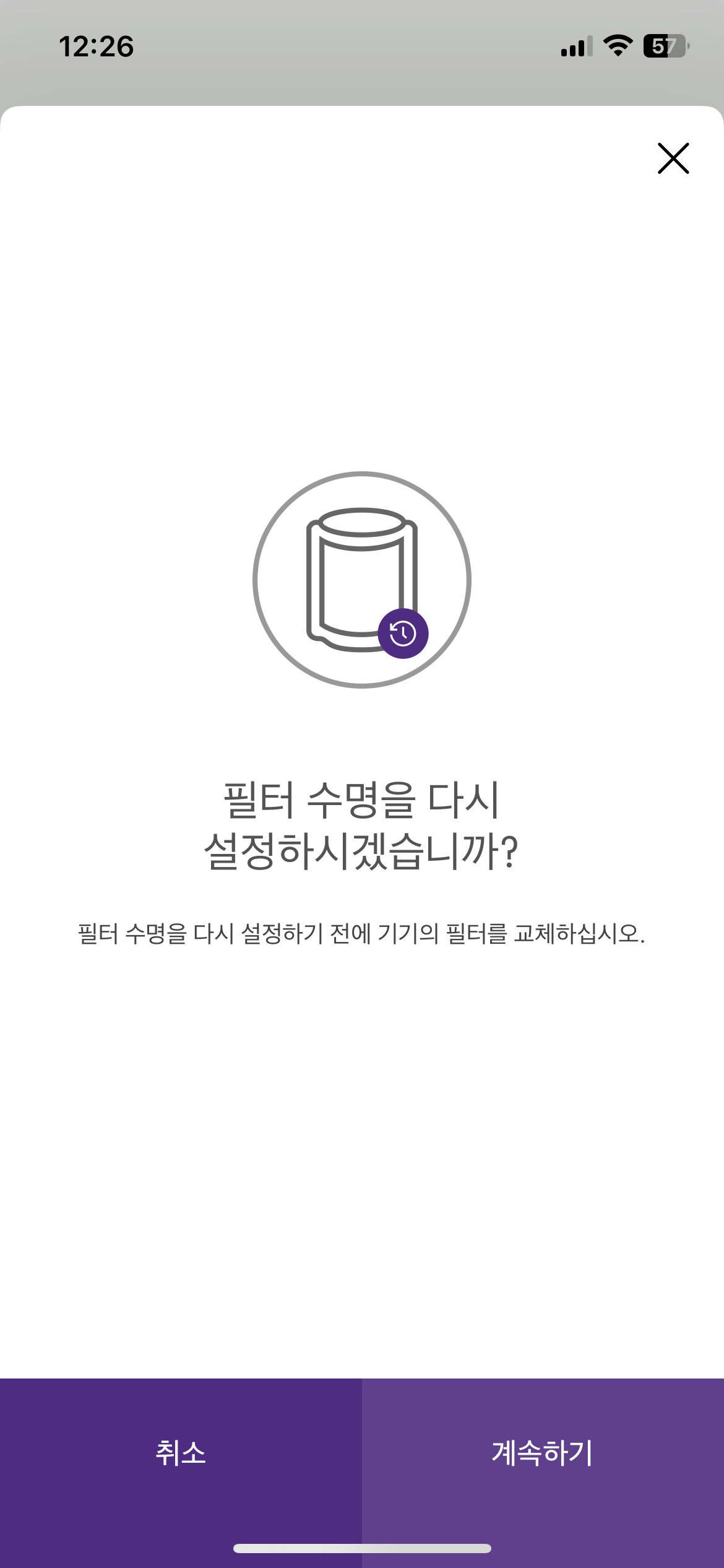 장착을 마치고, 앱에서 필터 수명을 초기화해준다.